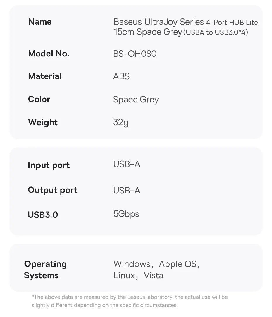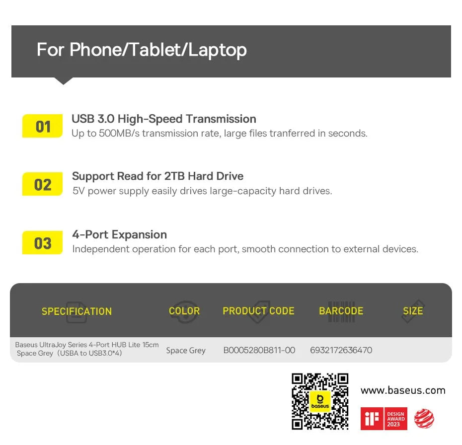 ✅ 1 × Hub USB 3.0 Baseus – 4 ports