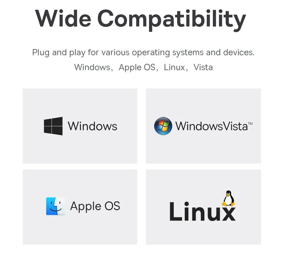 💻 Compatibilité universelle – Fonctionne avec Xiaomi, Lenovo, MacBook, PC Windows, Linux et Apple OS.