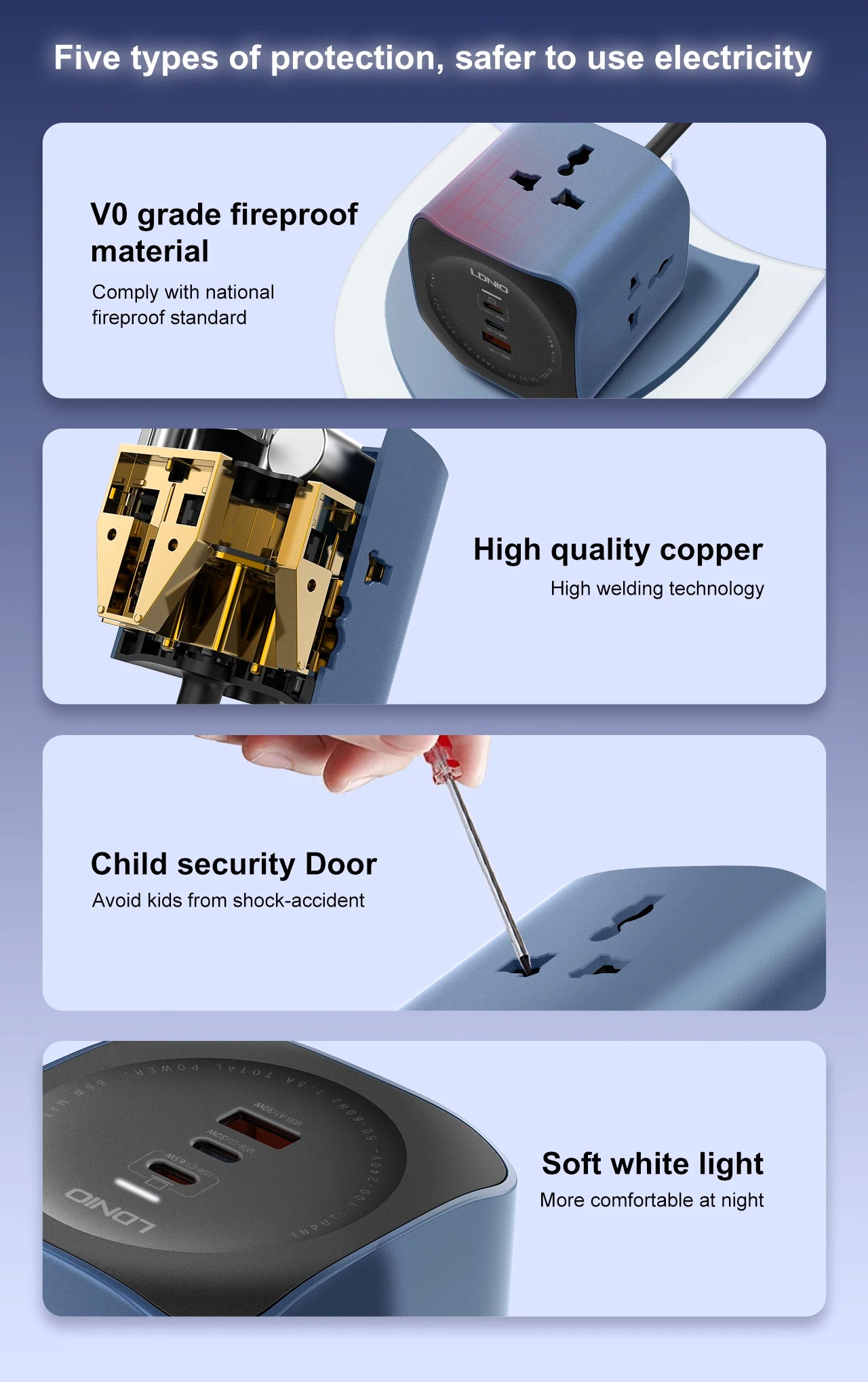 🧠 Protection intégrée contre les surtensions – Préserve vos appareils contre les courts-circuits, les surcharges et les pics de tension.
